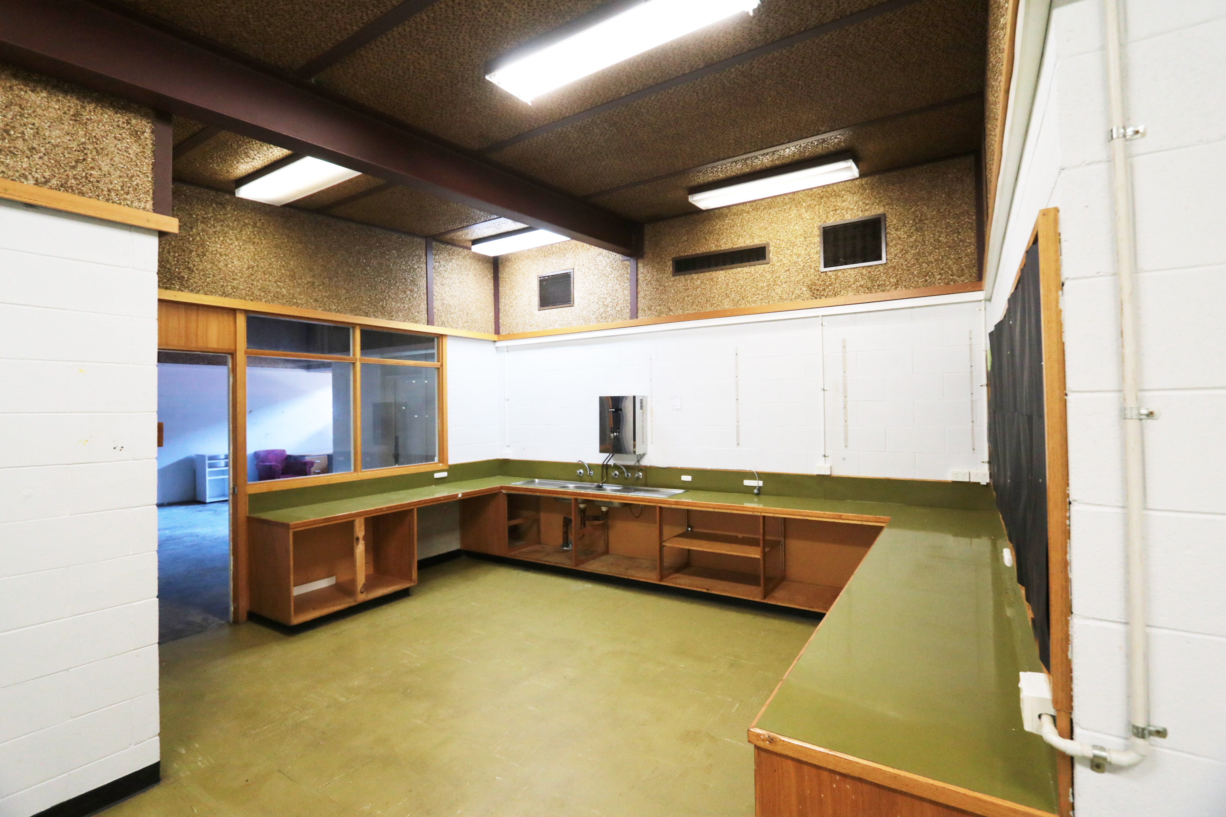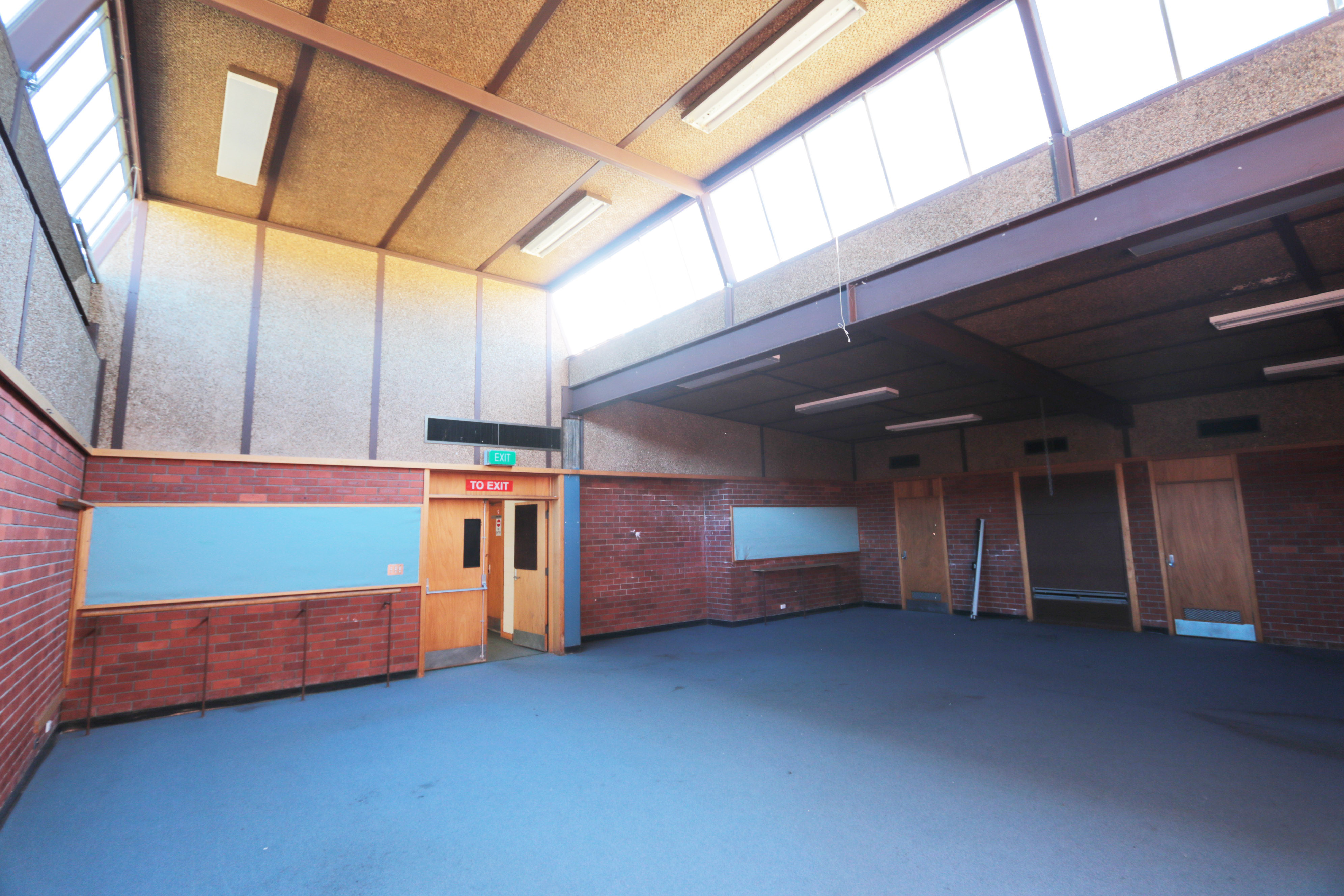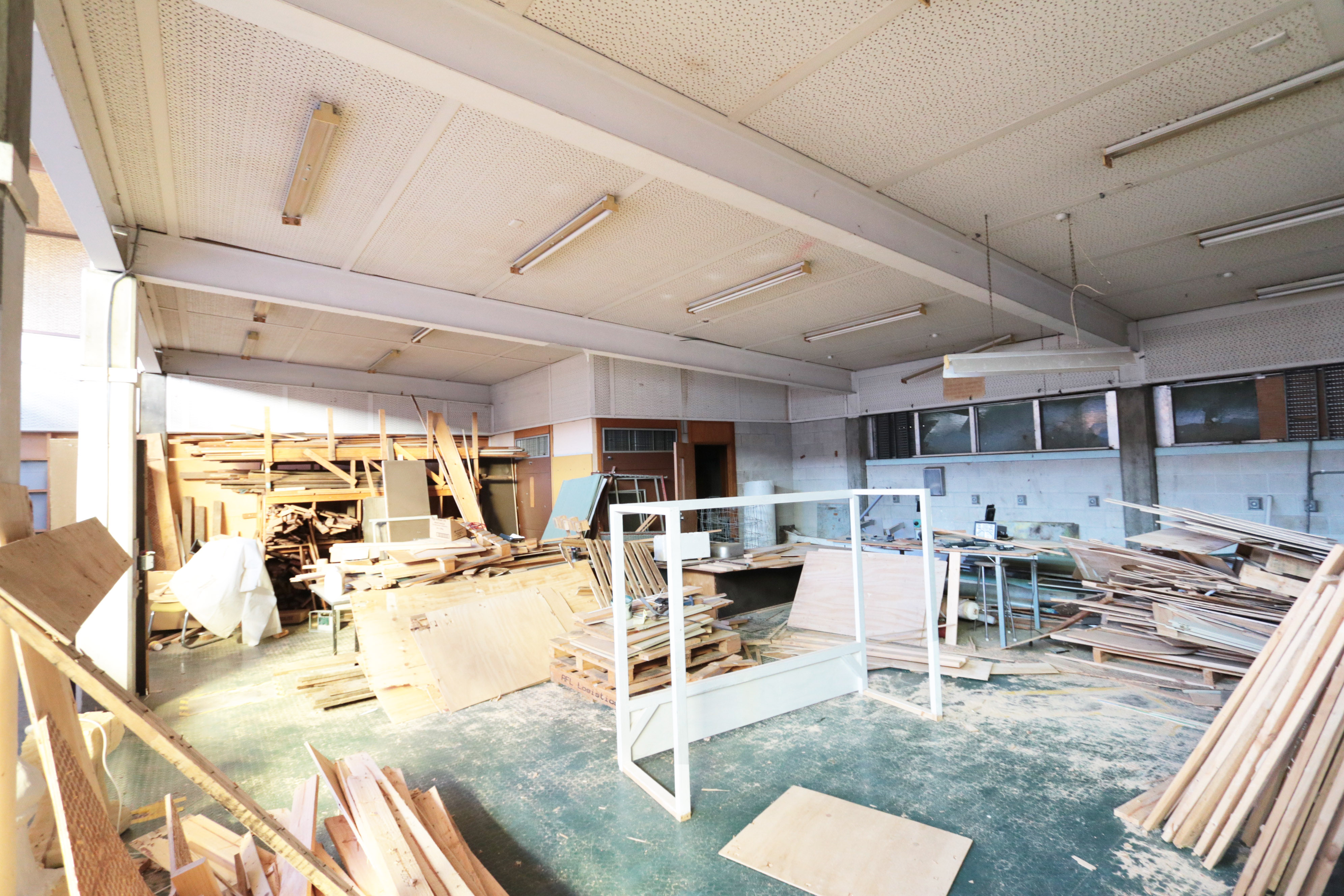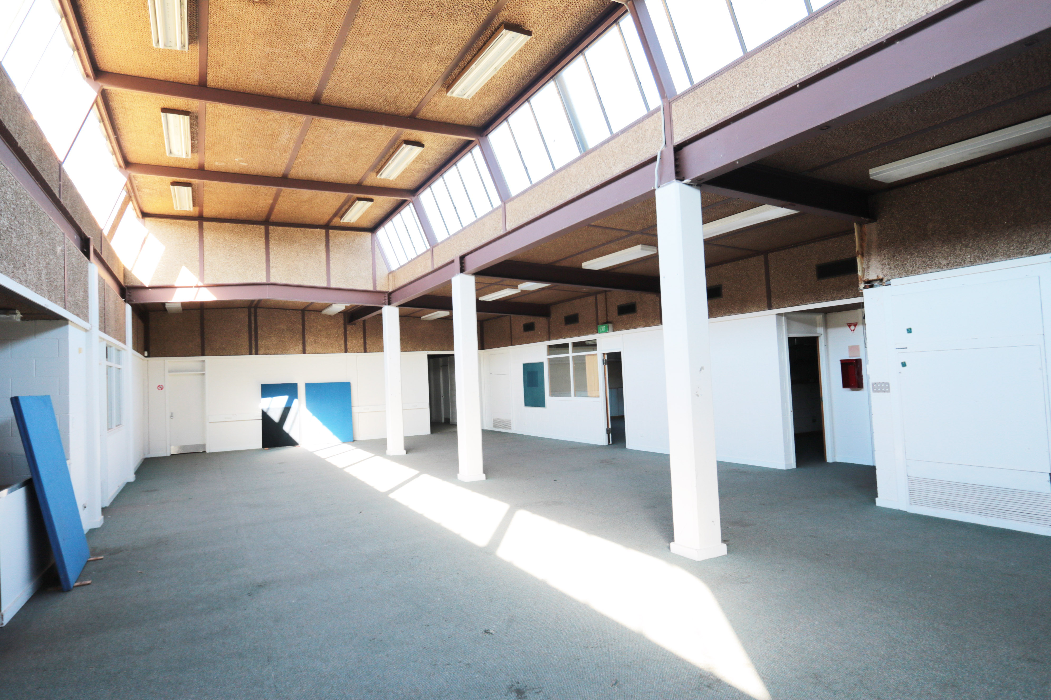 - Ex High School; multiple large sized rooms, open plan areas, admin offices, work rooms, cafeterias
