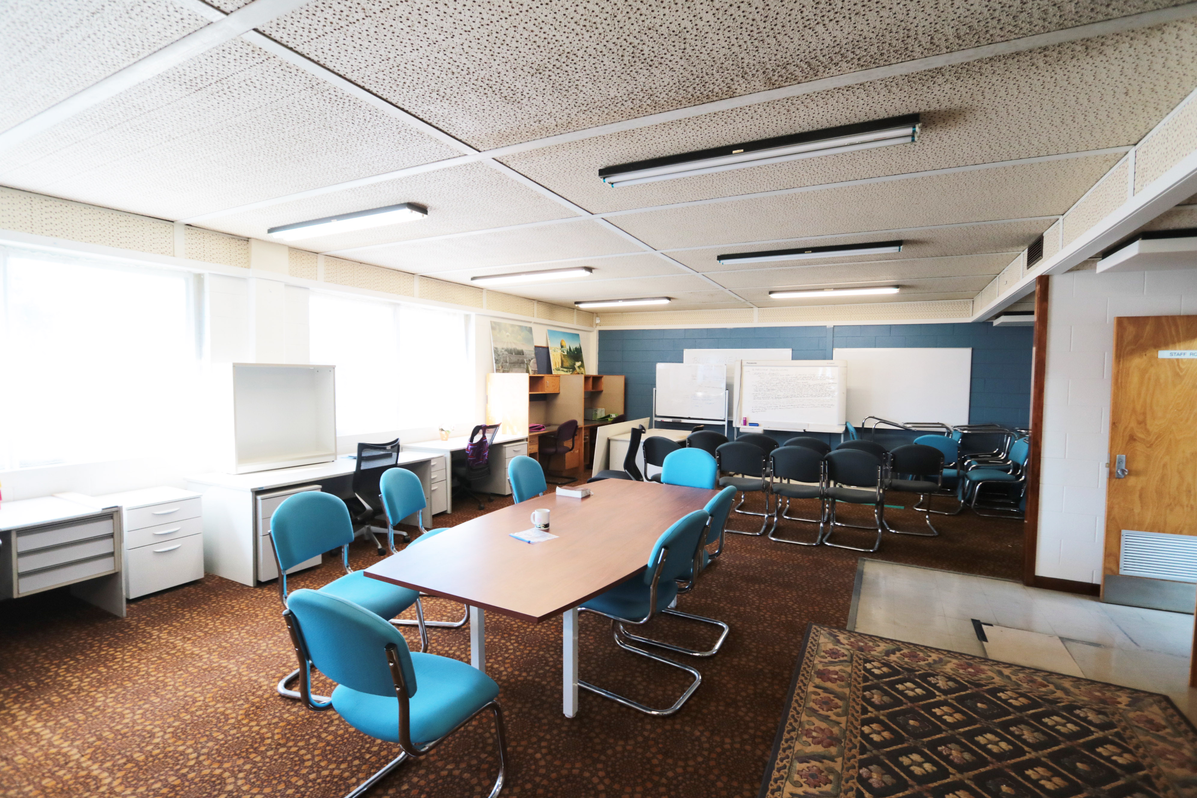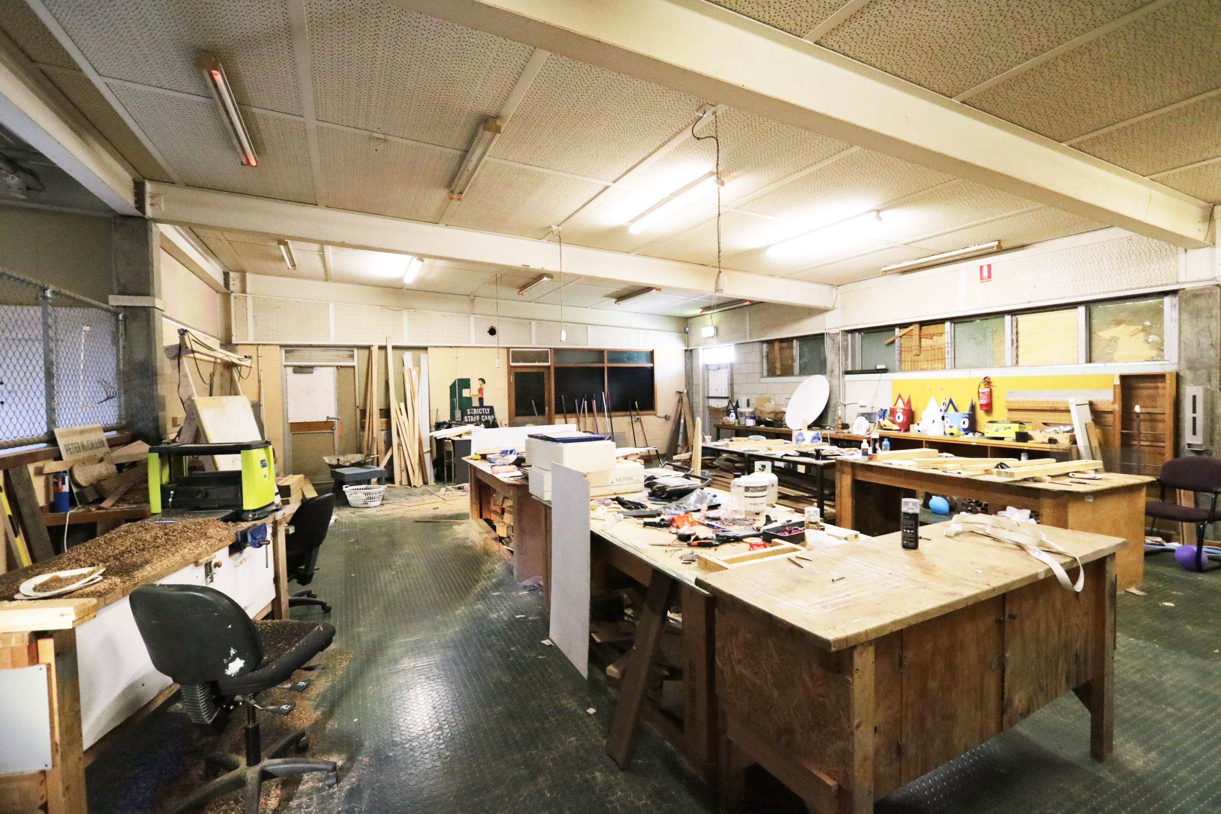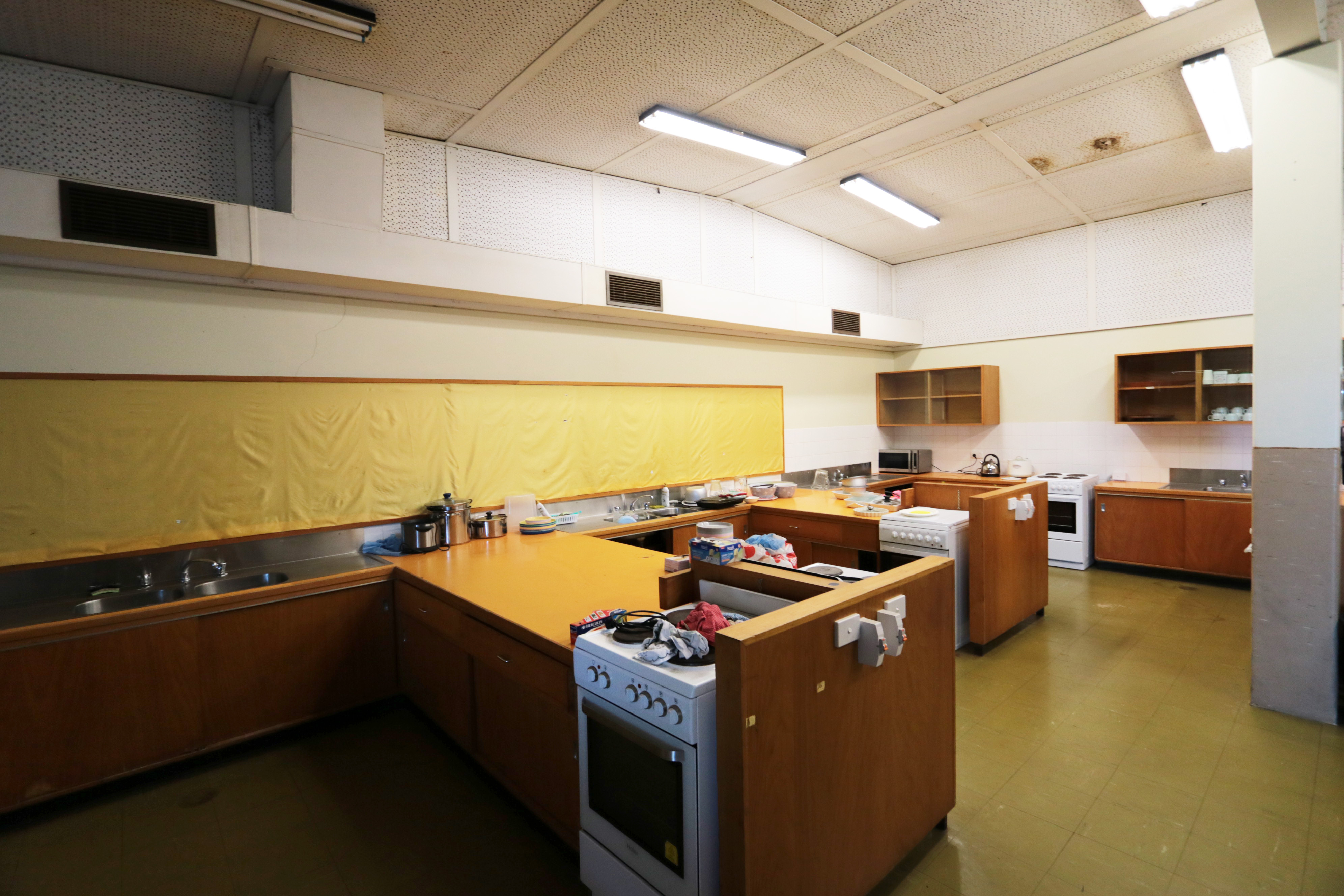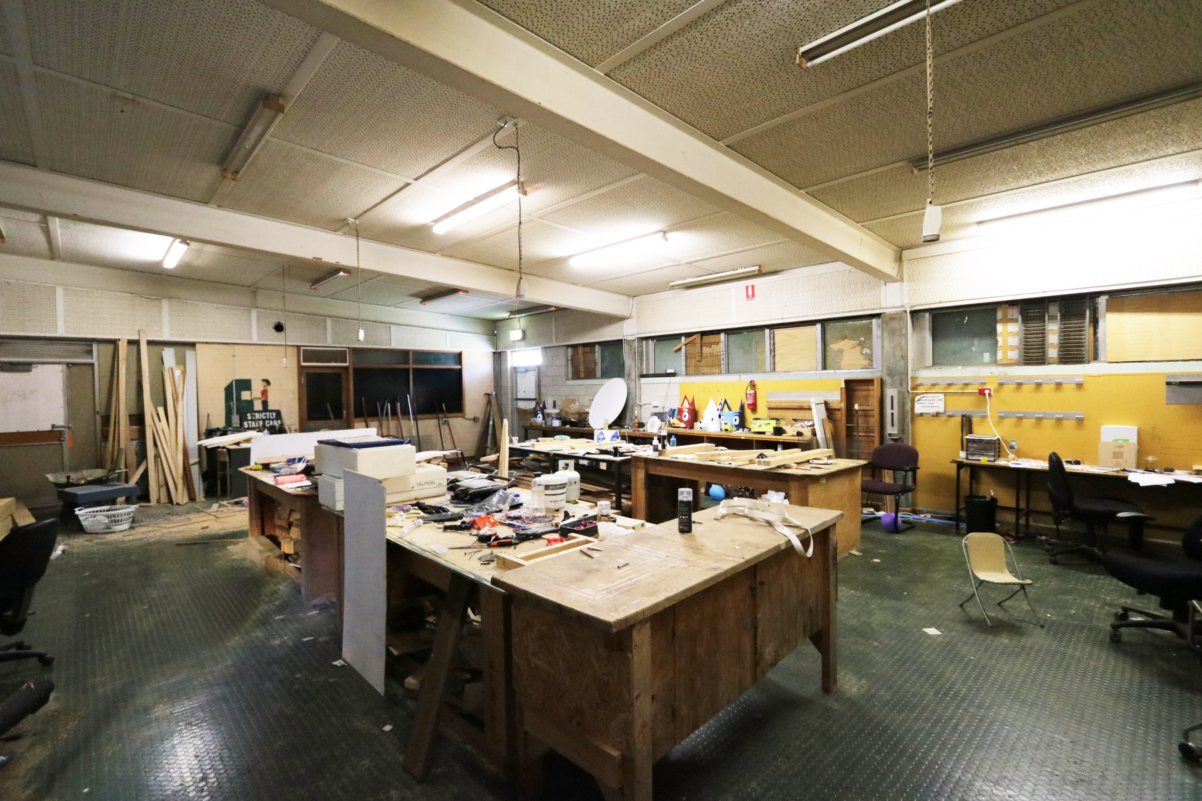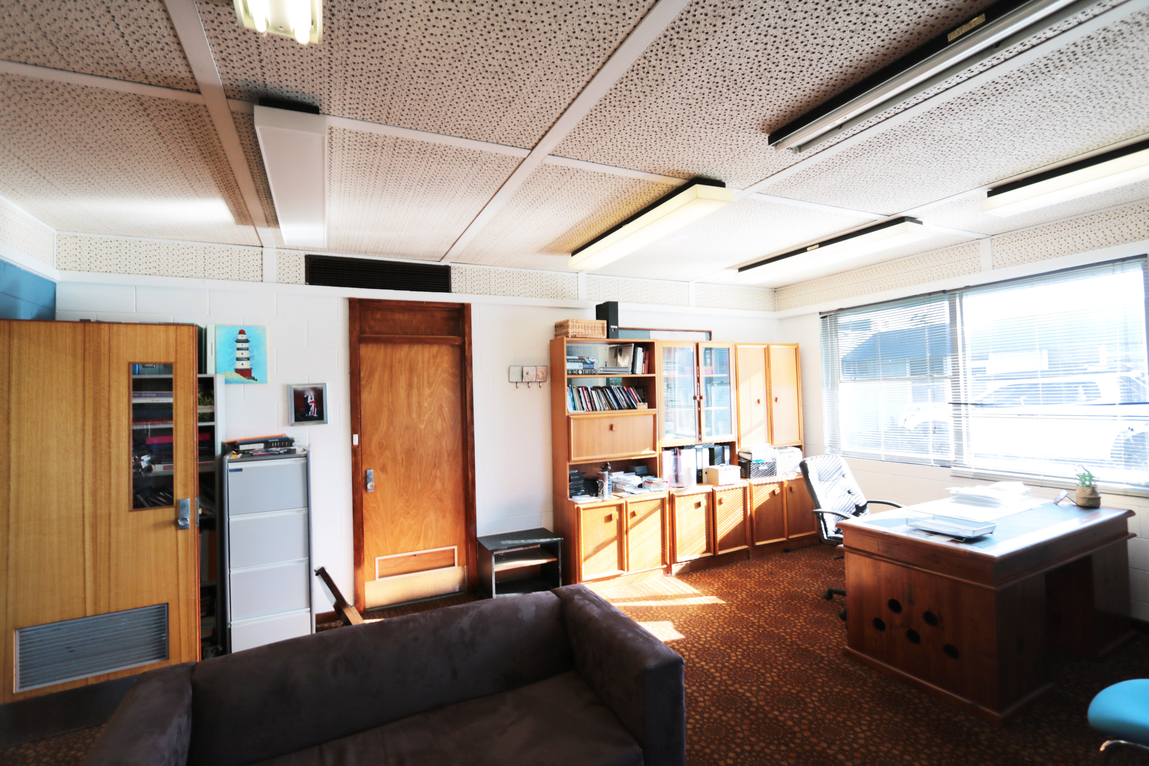 - Ex High School; multiple large sized rooms, open plan areas, admin offices, work rooms, cafeterias