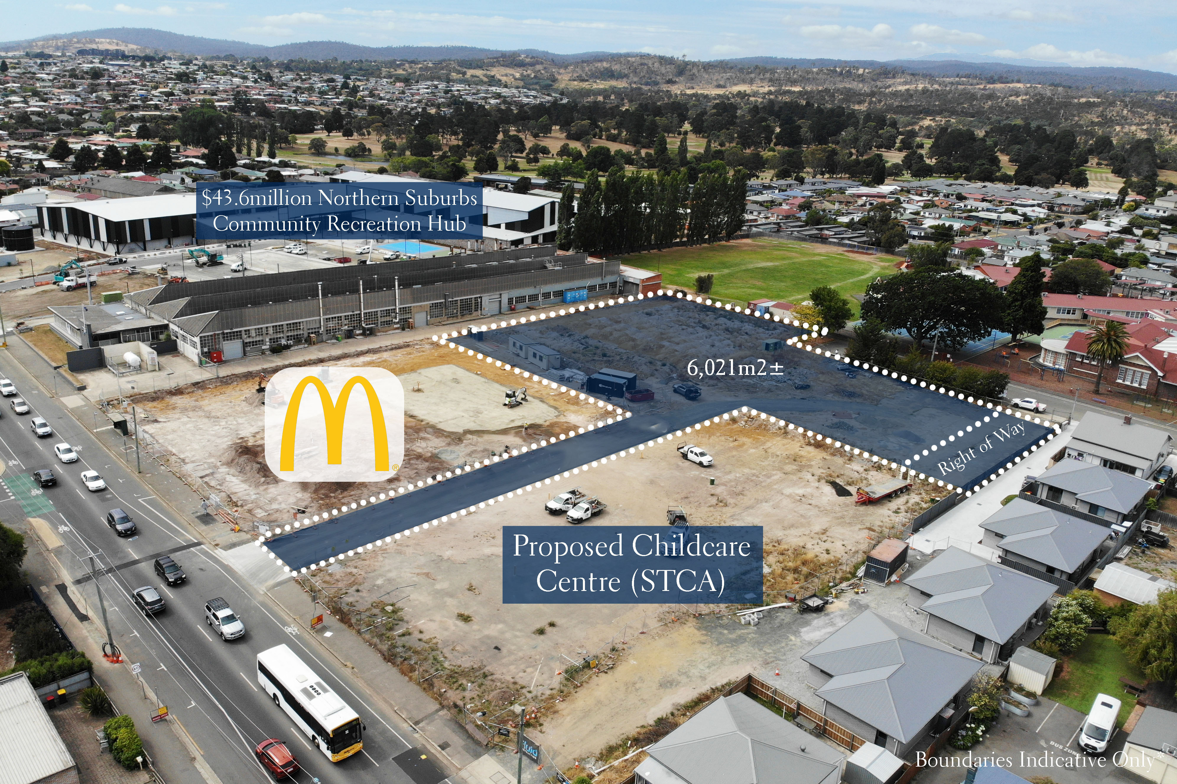 An unsurpassed opportunity to secure a large, 6,021m2 parcel of prime development land in Mowbray's Growth Corridor. Surrounded by star studded neighbours, McDonalds, Childcare (STCA) and the State Governments $43m Northern Recreations Hub, the site well suits a multitude of development concepts to capitalise on vast traffic movements. - Dual street entry with two way from Invermay Road/rear access to Cadorna St - Title expected to be issued within 6 months - Well proportioned site creating opportunity for multiple developments - Urban Mixed Use zoning - uses included Bulky Goods, Food Services, General Retail and Hire, Business and Professional Services to name a few (all STCA) For Sale by Offer. For further details contact Blake Shepherd or Joel Harwood.